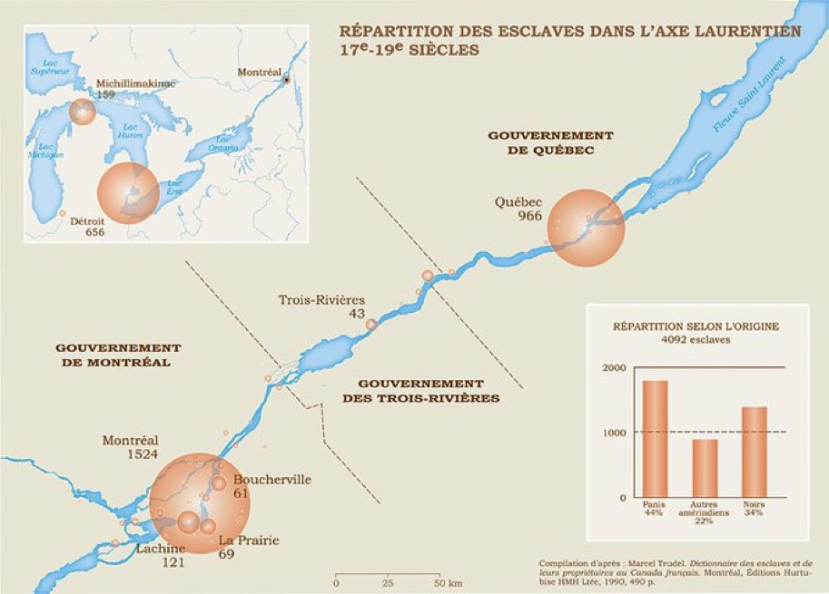 African Slavery made up less than 10% of the total enslaved, but were concentrated in the Saint Lawrence River Valley. Several hundred African Slaves were used in a mostly domestic manner in urban centers like Montreal. African slaves came to the Saint Lawrence River Valley indirectly as part of French “Prizes of War” taken from English ships or settlements in the Caribbean. Other slaves were brought over to the colony in small numbers as they accompanied their owners. No direct slave importation is recorded to have arrived in Quebec, but French authorities had to categorize the rising numbers of Africans by the middle of the 18th century. All Africans in New France were categorized as “Slaves” to distinguish them for Native “POW” captives that could still obtain their freedom. Individuality was removed and African captives now were only considered to be property. African Slavery constituted between 5-10% of the entire Slave population of New France with Montreal being the epicenter of African Slavery in Quebec. It’s here where we can glimpse some acts of agency.