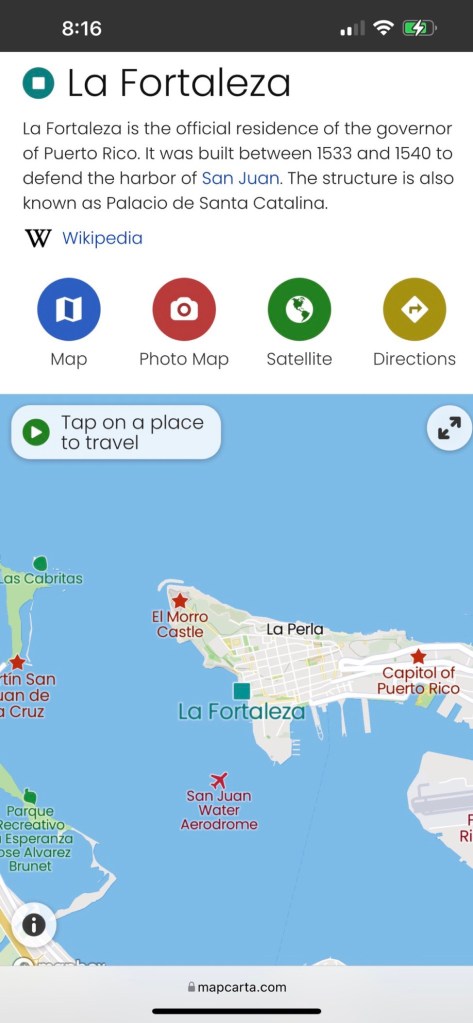 San Juan is situated on a neck of land, separated from the island by the Bayamon River and across an inlet via the San Antonio Bridge. La Fortaleza was constructed in 1540, as the first bastion to the protect the harbor, but was poorly situated being located inside the mouth of the harbor.