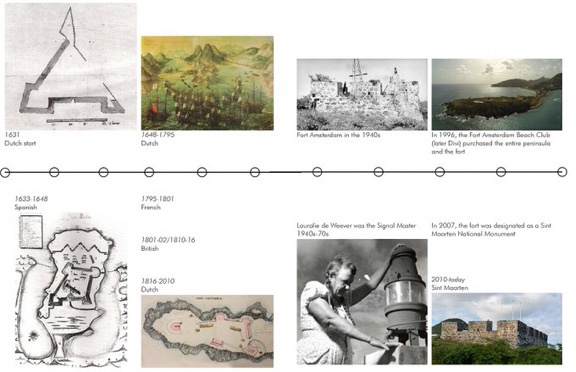 Philipsburg is the capital city and chief port of the modern Dutch half of the Island and served the role of primary colonial port in the 17th century. Fort Amsterdam was constructed in 1631 to protect Dutch claims and was the first major fortification constructed by the Netherlands in the Caribbean. It was captured by the Spanish two years later and began to rival El Morro in importance, as the fort dominated the harbor sitting on a long hilly peninsula that controlled the western opening of the bay.